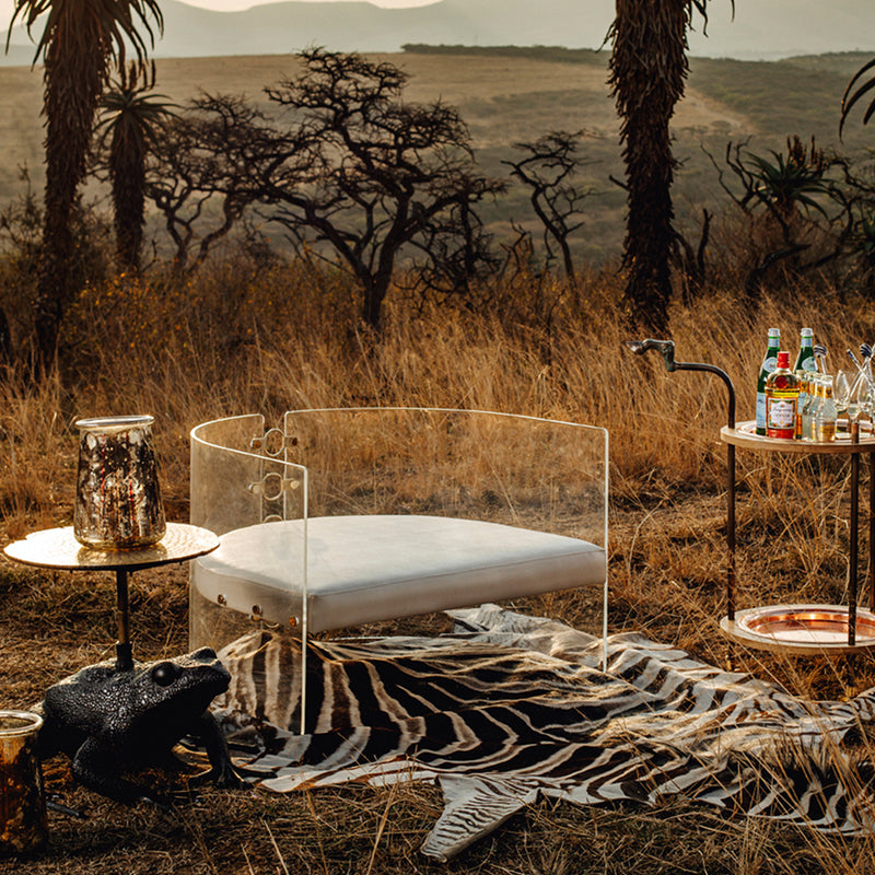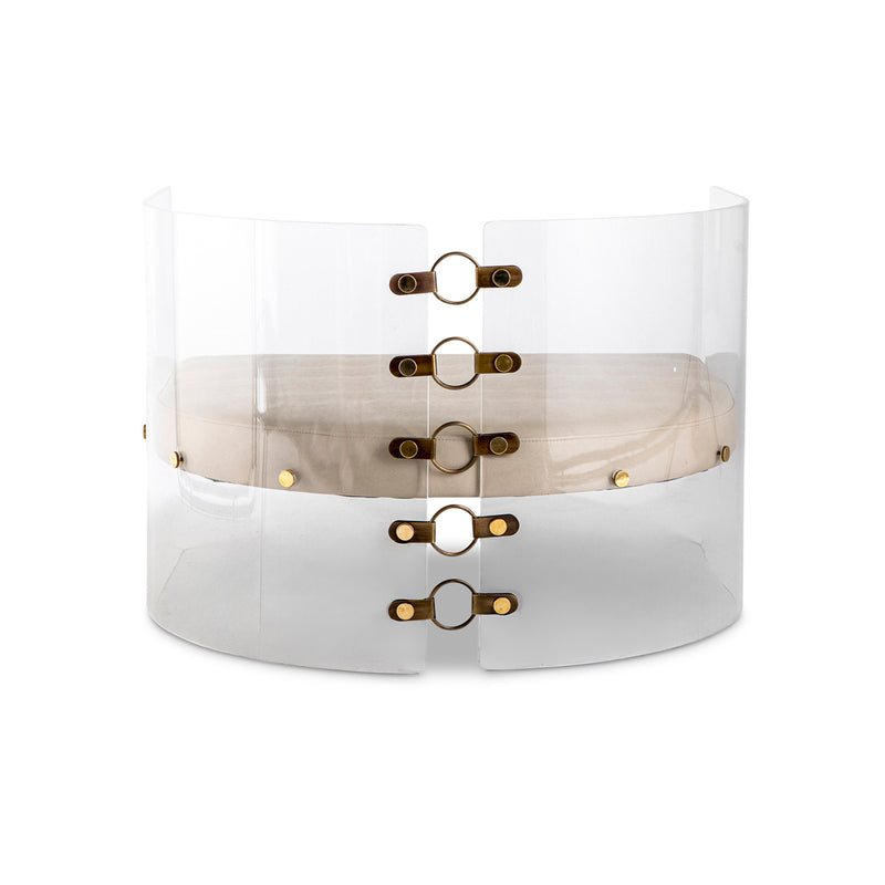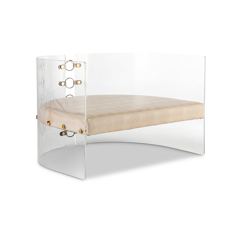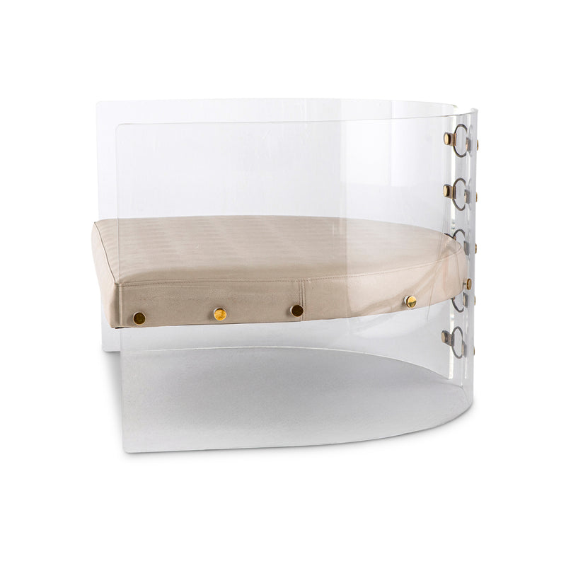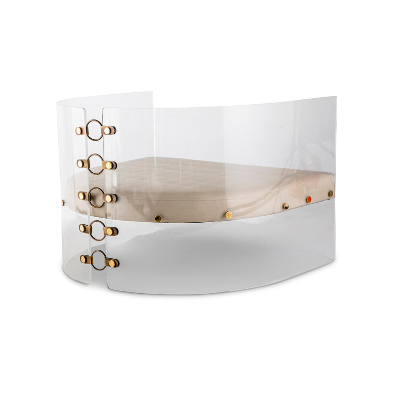 Lucite, bronzed steel & brass with Ivory leather upholstery