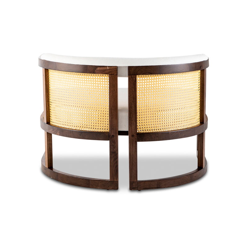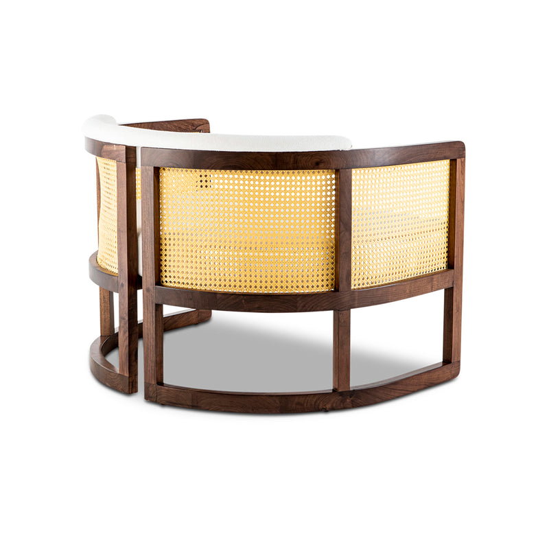 Walnut timber & rattan with linen upholstery