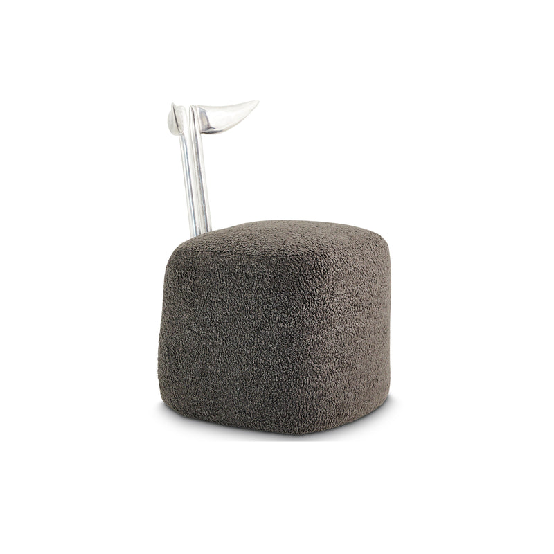This luxury dining chair has a backrest of solid sand cast aluminum, the method of sand casting creates a beautiful pitted surface. Each chair is single cast therefor each chair is unique, the aluminum sections are then hand polished, a task that takes in excess of 100 hours. The rich Silver frames have been paired with a charcoal Boucle', this creates a slightly shaggy appearance reminiscent of the 70's.